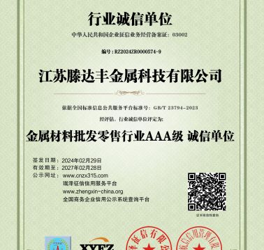 江蘇滕達(dá)豐金屬制品有限公司是成立于國內(nèi)經(jīng)濟(jì)蓬勃發(fā)展、不銹鋼需求急劇增長的二十一世紀(jì)初,公司地處風(fēng)景秀麗的太湖之畔—無錫,地理位置優(yōu)越,交通便利。是一家集不銹鋼材料批發(fā)與材料加工、倉儲(chǔ)、配送為一體的大型不銹鋼工貿(mào)型企業(yè)。公司坐落在不銹鋼交易集散地之一的無錫,公司現(xiàn)與山西太鋼、寶鋼、昆山大庚、張浦、聯(lián)眾等諸多知名鋼廠建立長期穩(wěn)定的合作關(guān)系。